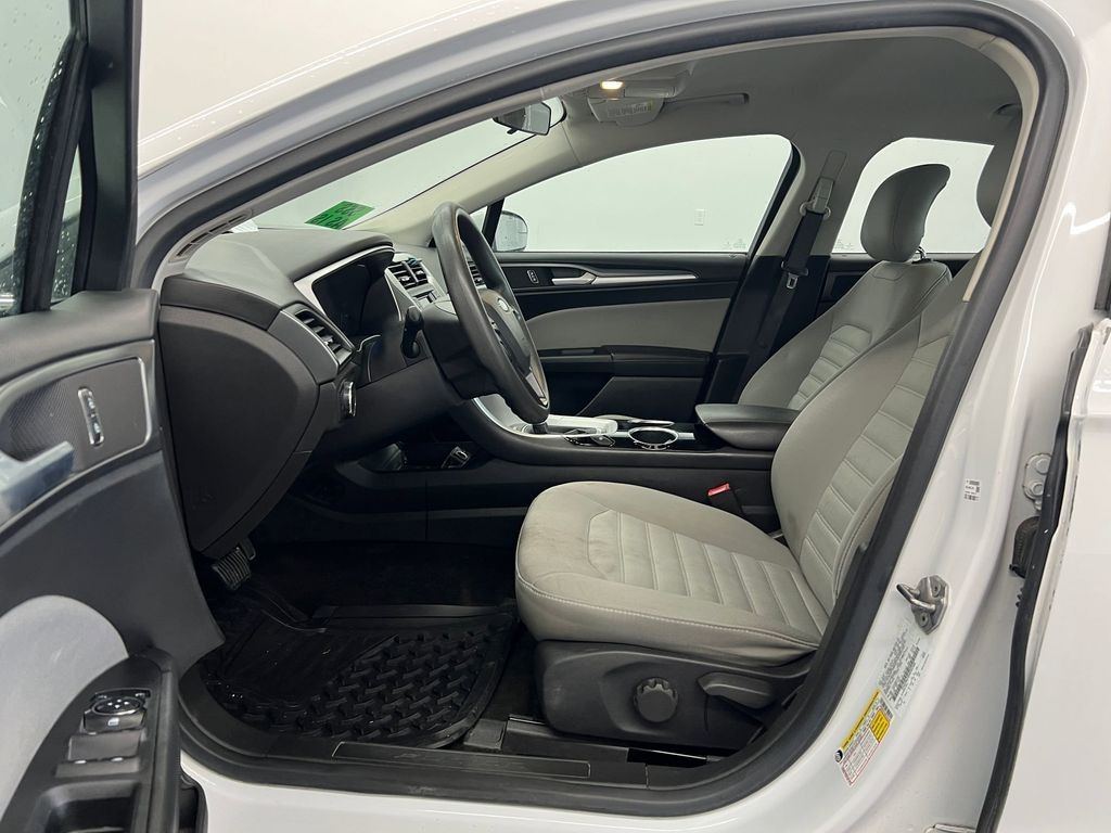Our dealership has already run the CARFAX report and it is clean. A clean CARFAX is a great asset for resale value in the future. Bluetooth technology is built into this model, keeping your hands on the steering wheel and your focus on the road. It has a 4 Cyl, 2.5L high output engine. Maintaining a stable interior temperature in the Ford Fusion is easy with the climate control system. Front wheel drive on this mid-size car gives you better traction and better fuel economy. This mid-size car embodies class and sophistication with its refined white exterior. Electronic Stability Control is one of many advanced safety features on this mid-size car. This vehicle has an automatic transmission. Easily set your speed in the Ford Fusion with a state of the art cruise control system. Increase or decrease velocity with the touch of a button. Enjoy the tried and true gasoline engine in this mid-size car.